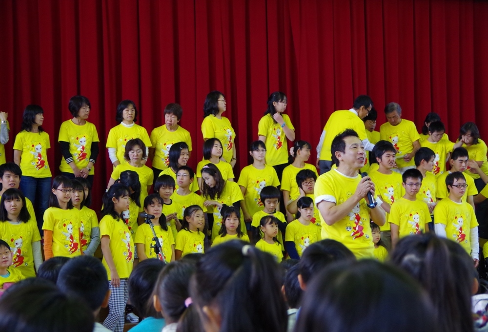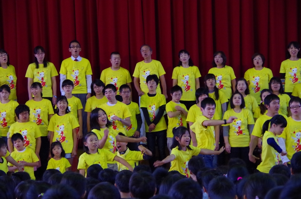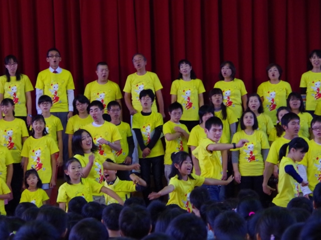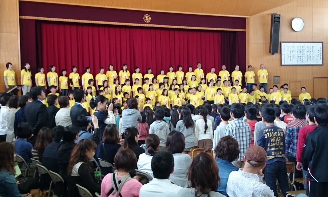 スギちゃんとの合同練習最終日。特訓の成果?スギちゃんの指揮は、なかなかなのです。さらに、振付までついた「ビリーブ」(振付は、何と‘マルモのおきて’や‘崖の上のポニョ’の濱田Peco美和子さん。地球組のためのオリジナルです。)