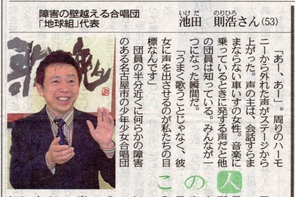 その後、地球組で2曲歌って…翌日の朝日新聞の朝刊は、もちろん地球組の場面です。