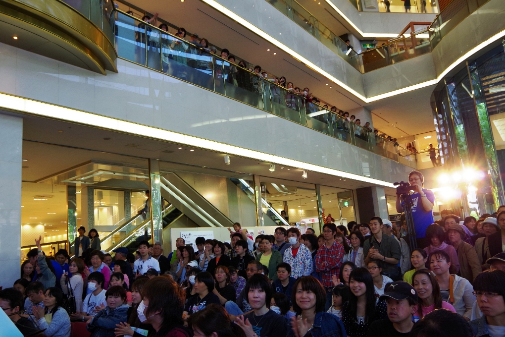 スギちゃんの指揮で、最高の盛り上がりでした。メイン会場には、恩田アナはじめ、加藤晴彦君、チュートリアルの徳井さん、ビビる大木さん、ザブングル、はんにゃ、そしてBOYS AND MEN が勢揃い。本当です。何千人もの来場者が集まって来て下さり、本当に感動のフィナーレだったんです。この景色、地球組の皆は、決して忘れないでしょう。
