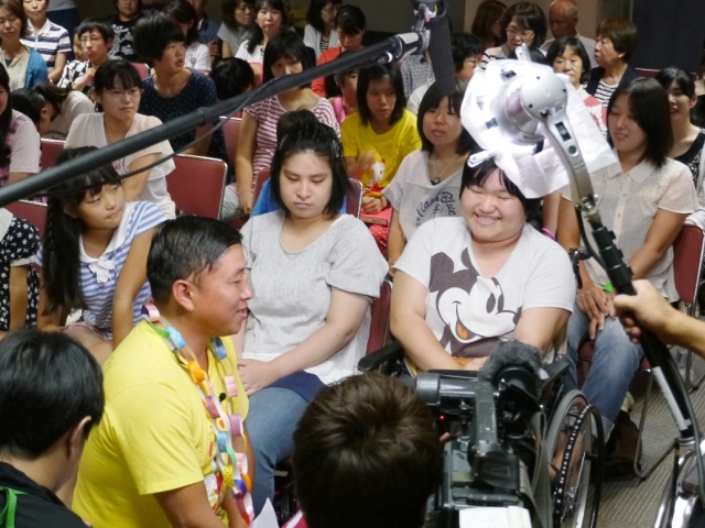 練習後、今度は丹羽さん宅を訪問。恵子ちゃんをいっぱい取材して下さいました。前回の秋山さん、今日の丹羽さん共、その様子が特集として24時間テレビ内で放送されたのです。